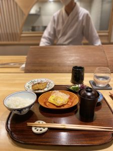 当然お腹いっぱいだけど、最後にシメ。ごはん、味噌汁、卵焼き、焼き魚、香の物。シンプルだからこそ味の奥深さがよくわかる。卵焼きの上にかかる鰹節は1000分の3ミリに削っていて特注の削り節機を使っているという。そして卵の原価は1個750円。その卵がおいしくない訳がなく、これだけでご飯が百杯はいけそうだ。ご飯は大将の実家のお米。「自分が食べていたお米が一番美味しいと思って」とは大将の弁。もちろん稲刈りの時は大将も帰省するそうだ。だからなのかご飯をお代わりするとすごく喜ぶ。そして本日その期待に応えてくれたのは麻由美ちゃん。「お米は別腹」と言って憚らない。ええ子やな!お姉さんがお手洗いに立っている間にライン交換したのは内緒だぜ!