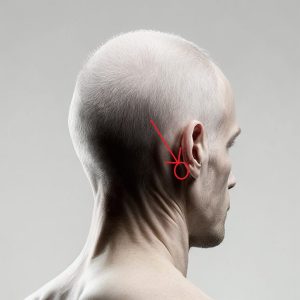 耳の穴を舐めると前方の方が反応しているので、同様にこの耳裏の骨を刺激することで快感を得ることができる。