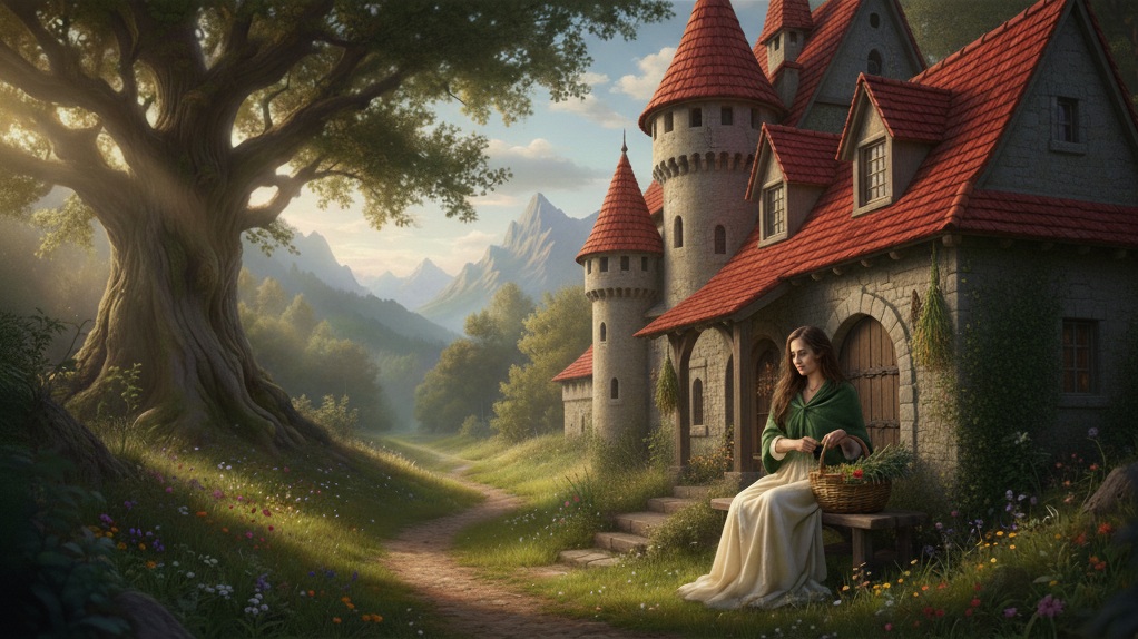 村々からは離れたその家では、少し年を取った一人の女性が暮らしていました。森や山で薬草を取ったり、香草でお茶を作ったりして、生活の糧にしています。
