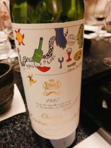 もともと、ブラック女性の就職祝いで開催された食事会だったので、彼女の生まれ年のワインを楽しむ。