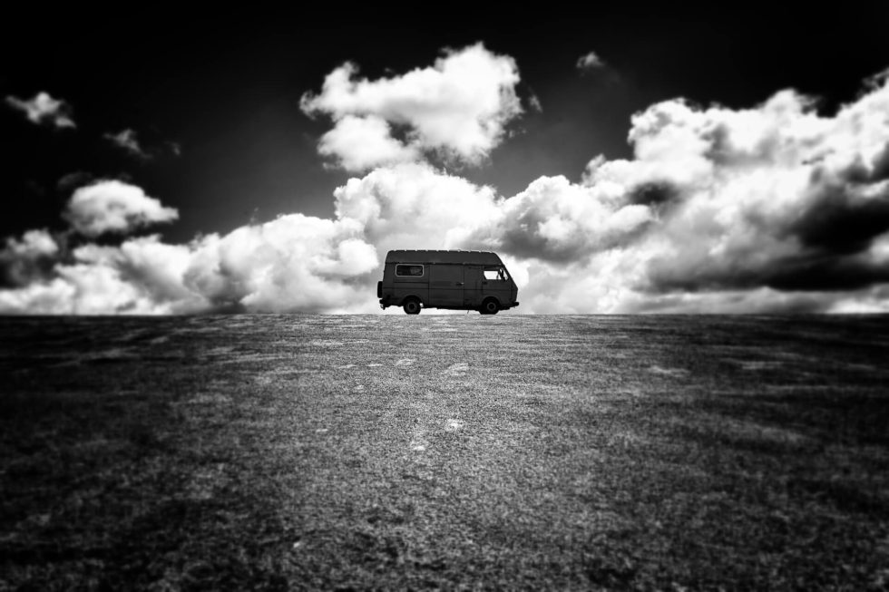 映画でロシアのマフィアが乗っているような車で、後方ガラスはスモークされていて外からは見えない。