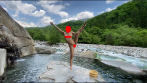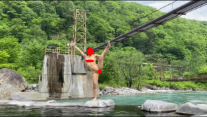 この娘は、バレエを習っていたので、Y字が綺麗に決まる。