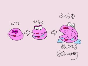 前述のとおり、小陰唇は興奮して血流量が変わりまずは閉じた状態から開いた状態になり、さらに充血すると厚くなっていく。