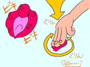 自分の性器を刺激する中で必ずと言っていいほど小陰唇を刺激している。この刺激の方法については、女性器から得られる快感については分析するしかないが以下の2つのパターンが見受けられる。