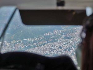 カリブ海南部の新スポットでダイビングを満喫したその足でメデジンへ向かいます。コロンビアは山や密林が多く、整備された幹線道路が限られているので、小型飛行機で移動するのが便利。客席との間のトビラを開けたままにしておくのが一般的のようで、コックピット越しに迫る街並みを見ていると、静かに気分が盛り上がるのを感じました。