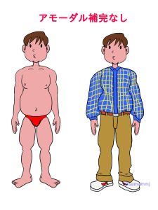 その男性は右側のような洋服を着ていましたが、左側のように胸が豊満であるのがわかるぐらいおなかがどっぷり出ておりました。