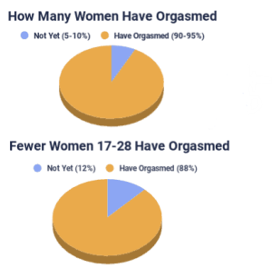 heterosexual women(異性愛者女性)でイケる人の割合は64%となっている。つまり、残りの36%はイケないということになるため、実に3人に1人の女性が全くイケないことになる。