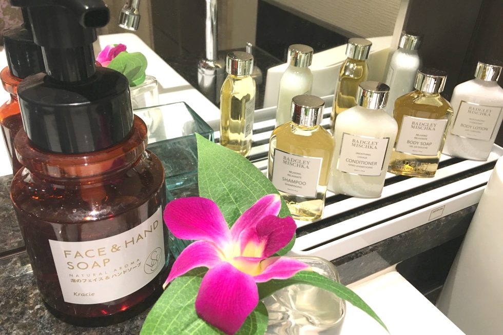 アメニティも豊富で、最高級ブランドの「バッジェリー・ミシュカ」のシャワージェルや、シャンプー&コンディショナーもあります。