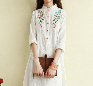 ※白い北欧風ワンピースの写真は Doliss「無地刺繍スタンドネックカジュアルワンピース」