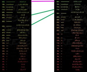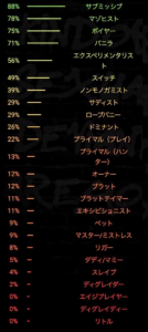 私にはマゾイストに対応するサディストの要素は少ない。私のテスト結果と並べると、このようになる。